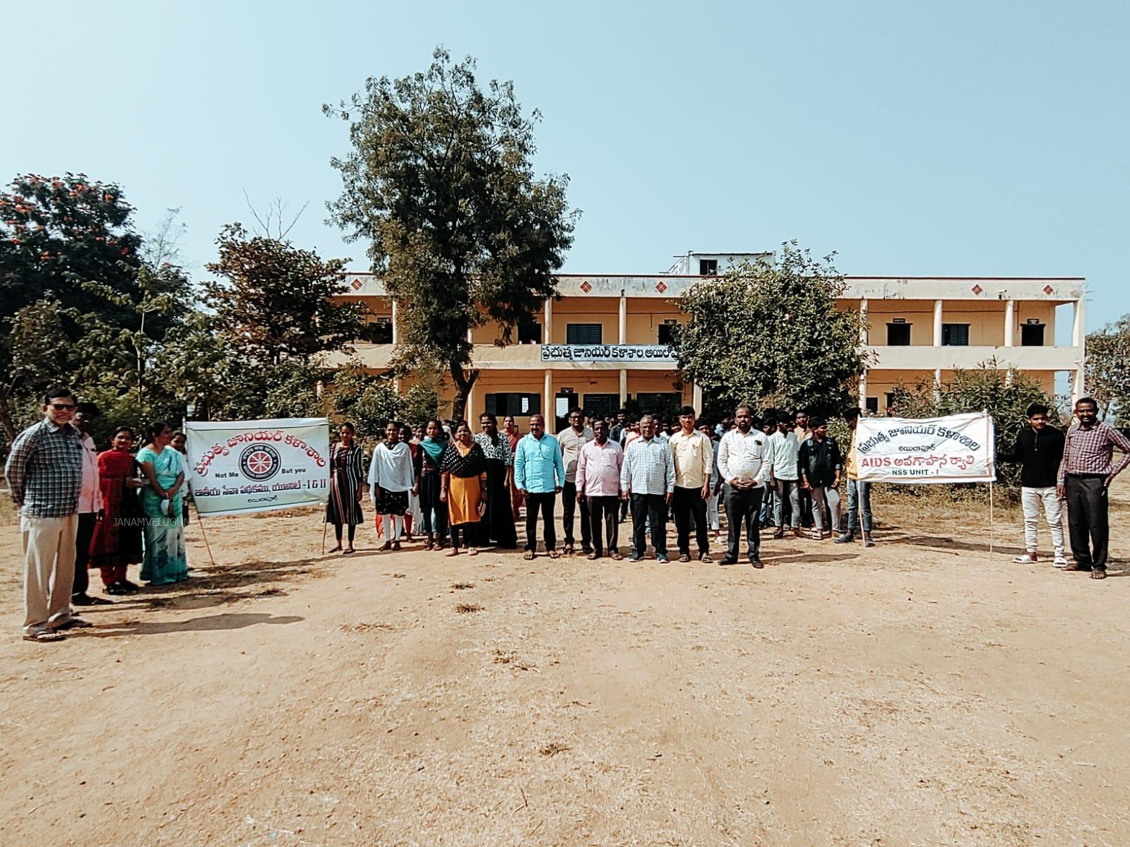 జనం వెలుగు, నందిపేట్:- నందిపేట్ మండలంలోని అయిలాపూర్ ప్రభుత్వ జూనియర్ కళాశాలలో విద్యార్థులు ప్రపంచ ఎయిడ్స్ దినోత్సవం సందర్భంగా జూనియర్ కాలేజీ నుండి ప్రధాన వీధుల్లో ర్యాలీ నిర్వహించారు. ఎయిడ్స్ వ్యాధి పట్ల అప్రమత్తంగా వుండాలని నినాదాలు చేస్తు వ్యాధి సంక్రమణ నివారణపై ప్రజలకు, విద్యార్థులకు అవగాహన కల్పించామని కళాశాల ప్రిన్సిపాల్ పెద్ది నారాయణ అన్నారు. ఈ కార్యక్రమంలో ఎన్ ఎస్ ఎస్ ప్రోగ్రామ్ కోఆడినేటర్ శ్రీనివాస్, వెంకటేశం, అధ్యాపక బృందం విద్యార్థులు తదితరులు పాల్గొన్నారు.