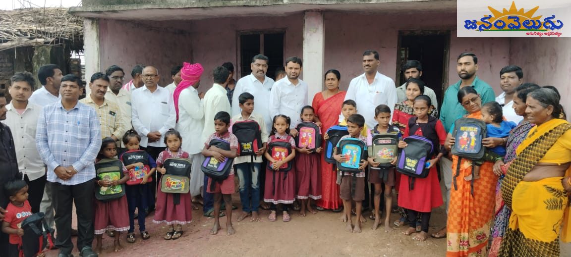 వర్ధంతి సందర్బంగా స్కూల్ బ్యాగుల పంపిని