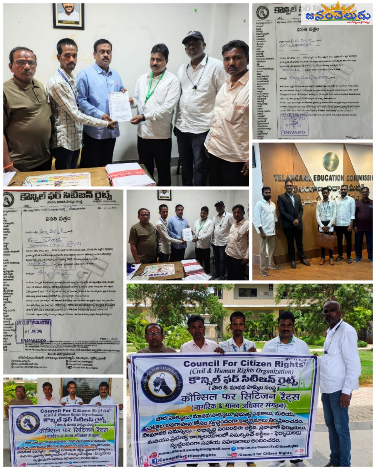 జనంవెలుగు, కామారెడ్డి:- విద్యా హక్కు చట్టం (RTE) సెక్షన్ 12(1)(C) ప్రకారం ప్రైవేట్ అన్ఎయిడెడ్ పాఠశాలల్లో ఆర్థికంగా, సామాజికంగా వెనుకబడిన వర్గాలకు చెందిన పిల్లలకు 25 శాతం ఉచిత సీట్లు కల్పించాలని కోరుతూ, పౌర హక్కుల కోసం పనిచేస్తున్న జాతీయ స్వచ్ఛంద సంస్థ కౌన్సిల్ ఫర్ సిటిజన్ రైట్స్ (CCR) రాష్ట్ర వ్యాప్తంగా వినతి పత్రాల ప్రస్థానం ప్రారంభించింది. ఈ నేపథ్యంలో గురువారం రోజు కామారెడ్డి జిల్లా కలెక్టర్, జిల్లా విద్యాధికారి (DEO)లకు CCR ప్రతినిధులు వినతి పత్రాలు అందజేశారు. 2025–26 విద్యా సంవత్సరం నుండి రాష్ట్రవ్యాప్తంగా సెక్షన్ 12(1)(C) నిబంధనను అమలు చేయాలని వారు ప్రభుత్వాన్ని డిమాండ్ చేశారు. సీసీఆర్ వ్యవస్థాపక అధ్యక్షుడు మంచికట్ల అనిల్ కుమార్ సూచనలతో మిషన్ ఎడ్యుకేషన్ డైరెక్టర్ అశోక్ కాకర్ల నేతృత్వంలో జిల్లా ప్రతినిధులు జోనల్ కార్యదర్శి కరీముద్దీన్, జిల్లా కార్యదర్శి బూర్ల శ్రవణ్, ప్రోగ్రాం కోఆర్డినేటర్ డి. భాస్కర్, మీర్జాపురం రామకృష్ణ, ఎస్.కే. సాయన్న తదితరులు పాల్గొన్నారు.