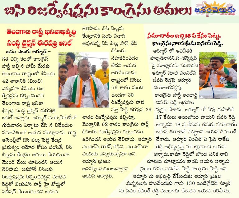 | armoor బిసి రిజర్వేషన్లను కాంగ్రెసు అమలు చేసింది