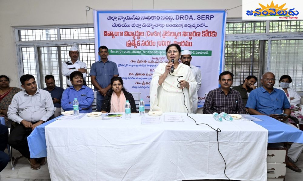 ప్రత్యేక అవసరాలు కలిగిన పిల్లలకు సంక్షేమ పథకాల ద్వారా లబ్ది చేకూర్చాలి జిల్లా జడ్జి జీ.వీ.ఎన్.భరతలక్ష్మి కలెక్టర్ తో కలిసి ప్రత్యేక సదరం శిబిరంను ప్రారంభించిన జిల్లా జడ్జి జనంవెలుగు, నిజామాబాద్, జనవరి 24 :...