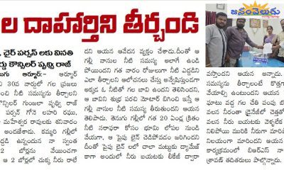 ప్రజల దాహార్తిని తీర్చండి కమీషనర్,చైర్ పర్సన్ లకు వినతి 30 వ వార్డు కౌన్సిలర్ పృథ్వి రాజ్ జనం వెలుగు ఆర్మూర్:- ఆర్మూర్ మున్సిపాలిటీలోని 30 వ వార్డులో గల ప్రజలు త్రాగేందుకు మంచి నీటి...
